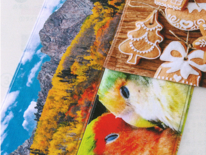 ベース色の黄土色は比較的再現性の高い色となり、データに近い色味がでています。ピンクやオレンジ等鮮やかな色はくすみが強くでます。濃色系の青色や黒色については逆に若干白っぽく薄い色に仕上ります。